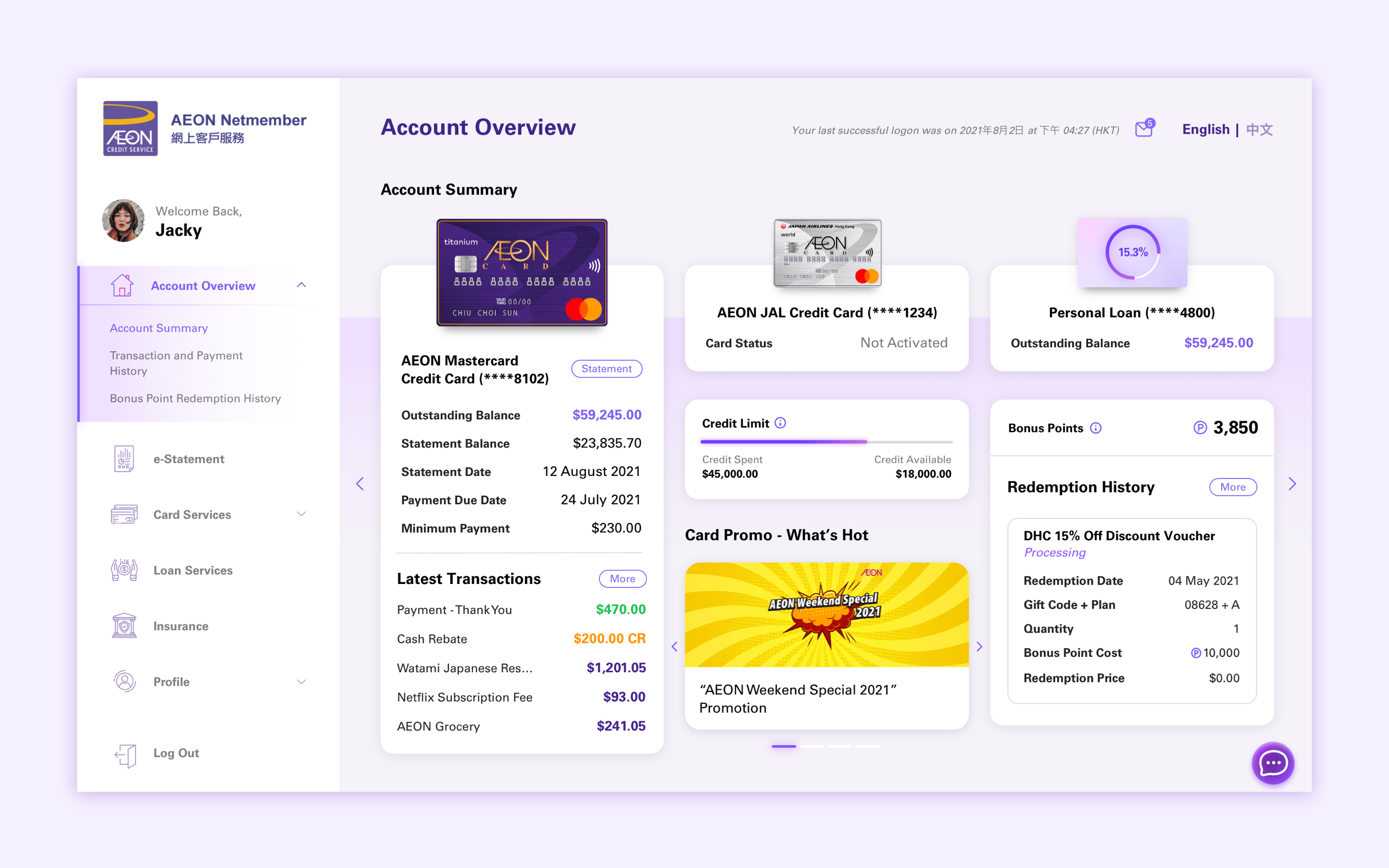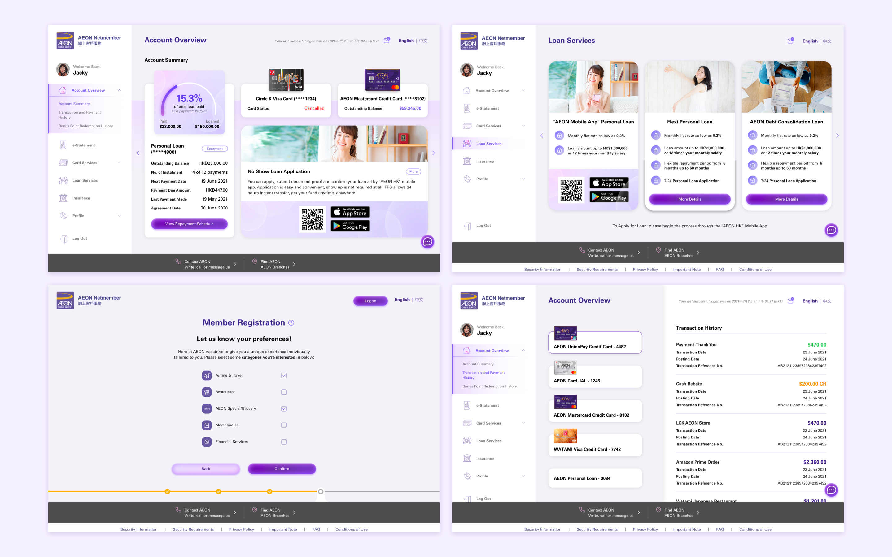 The resulting redesign not only modernized the platform but also positioned AEON as a major player in Hong Kong's vibrant digital banking space. We were able to generate more engagement, increased the use of their key credit and loan services with the simplified flows, and overall created a more positive digital experience for recurring users and incoming ones.