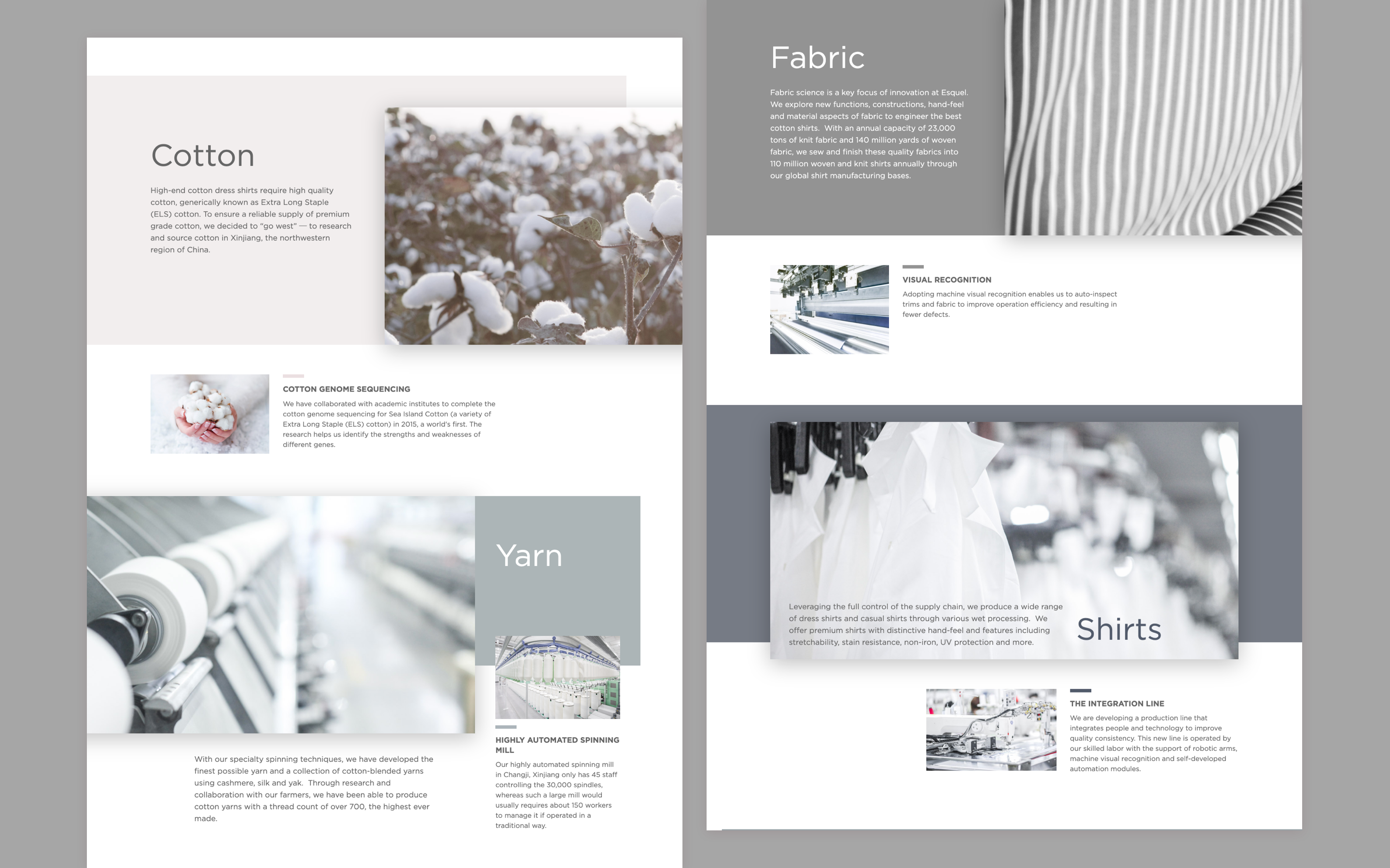 Esquel is one of the biggest cotton suppliers and manufacturers in the world; whether you're wearing Nike or Uniqlo, if you're wearing cotton, you're probably wearing Esquel. The company has been around for a long time and needed a redesigned website that would better reflect their stalwart position on the world stage. With that in mind, I had the goal of designing that was clean and organized due to the wealth of information that needed to be shown, and placed some small contemporary elements within the design to give the website some flair and to avoid looking too "corporate".