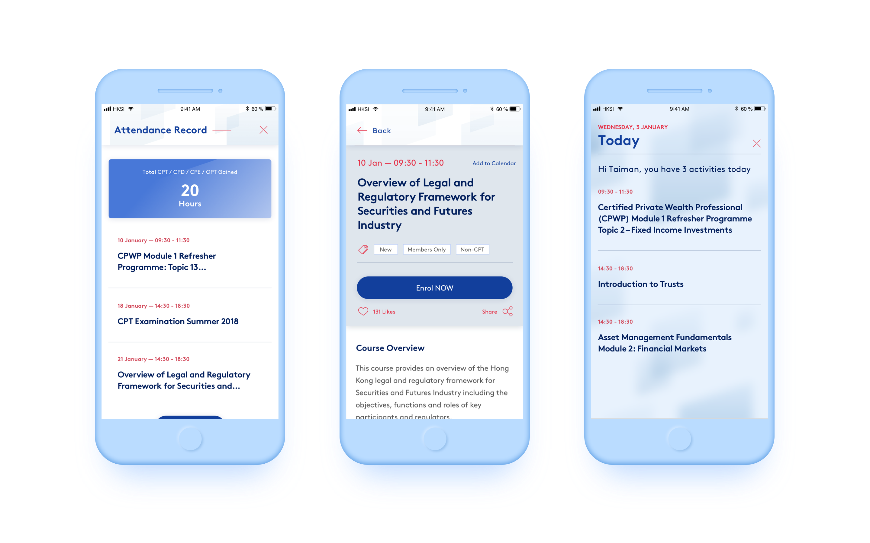 We've had the opportunity to build HKSI's current website before and following its launch they wanted to build an accompanying app to supplement their website's functions and to accommodate current students' needs in joining classes, registering for examinations and collecting coursework.