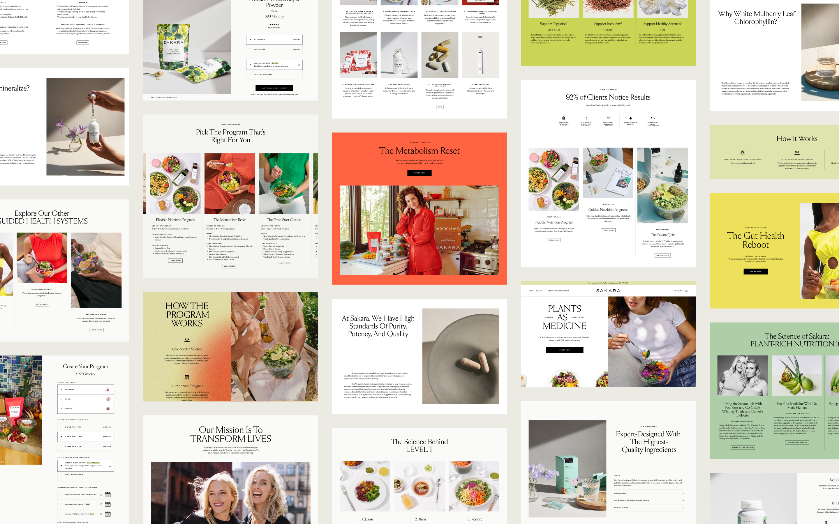 Inspire, Welcome, Educate A major strength Sakara carried was with its value propositions and brand. The new design provides more platforms where Sakara can demonstrate its scientific prowess and how it relates to the company's product lineup. There are now spaces where users can see more social proof/validation, links and references to articles that support Sakara's value proposition, and a design that gives users a sneak peek on what it's like to live the Sakara Life