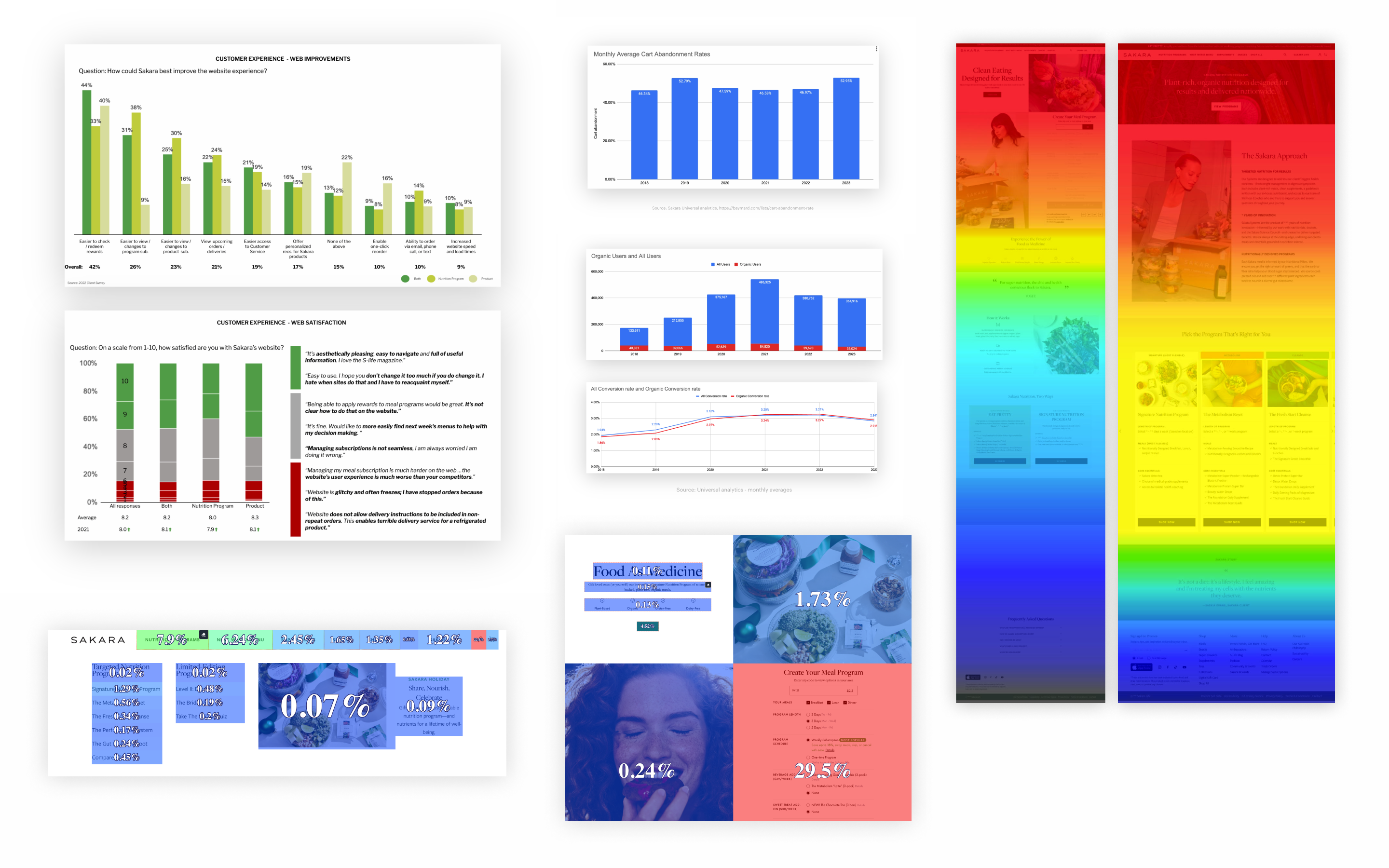 With a combination of User Testing, analytics, and gathering key data from cross-functional teams around Sakara, we discovered pain points, areas of improvement and were able to build a strategic roadmap on what was needed to get the Sakara website to where it needs to be. A few points of focus were unearthed for the design: