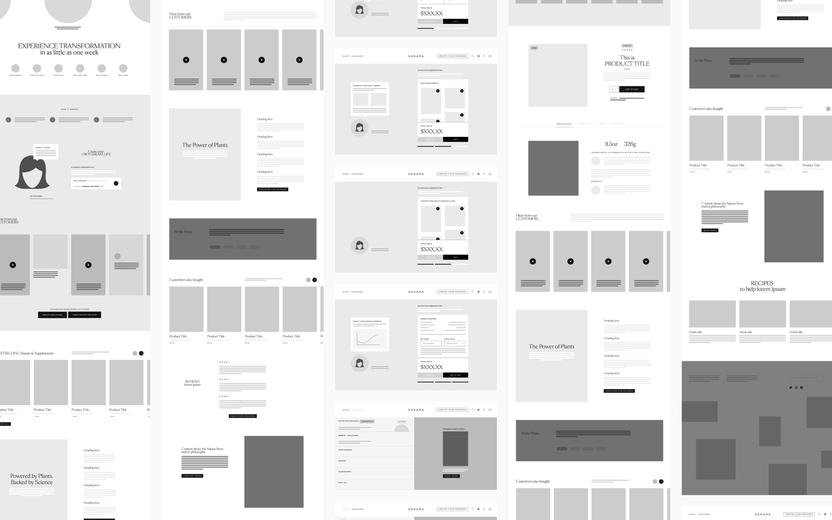 With the wireframes built and the Design System established, we had the necessary tools to build out the design. With Sakara's current platform utilizing legacy tech and an overcomplicated tech stack, we needed to make sure that the resulting designs were flexible, scalable and easy to implement with the Headless CMS platform that we wanted to replace our current system with.